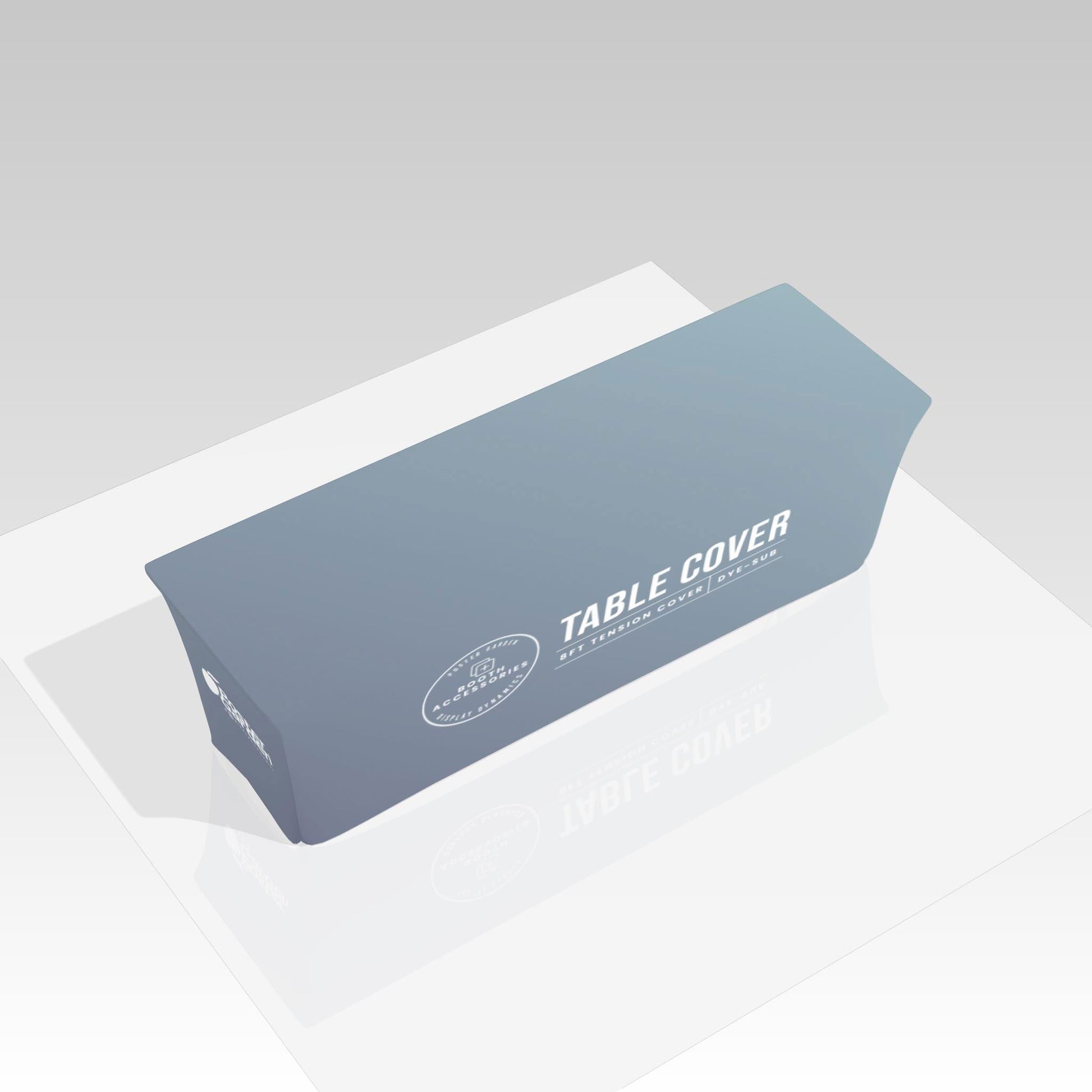 Fully printed table cover. Dye-sublimation graphic printing on stretch fabric. Fits most standard 8' tables. Table not included.